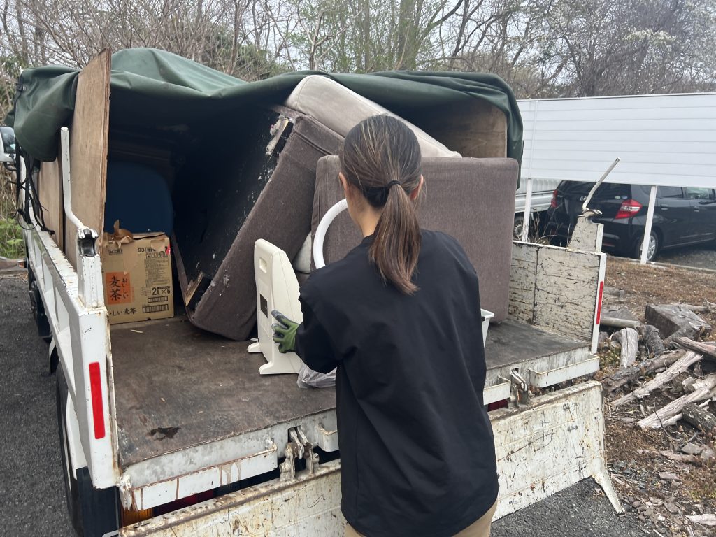 ソファーやテーブル、大型家具などをトラックに積み込む